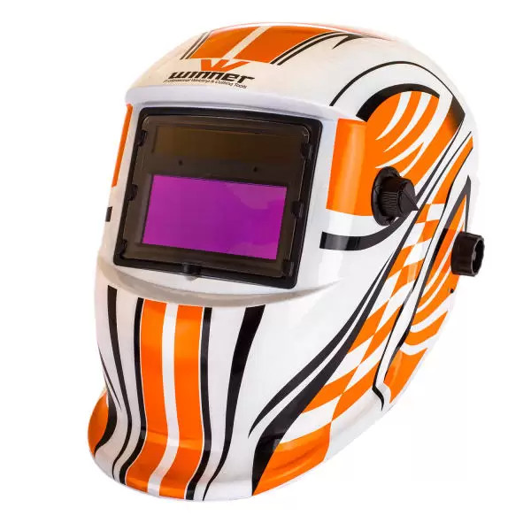 ماسک جوشکاری تمام اتوماتیک وینر مطابق با استاندارد CE اروپا و مورد تایید موسسه ANSI دارای ولوم تنظیم میزان تیرگی (SHADE) مناسب برای انواع روش های جوشکاری و سنگ زنی دارای باتری و سلول خورشیدی ولوم میزان حساسیت به شدت نور ولوم تنظیم میزان تیره ماندن پس از نور شدید (قوس الکتریکی) کلید تست برای تست عملکرد ماسک طراحی ارگونومیک و دید باز و واضح در محیط جوشکاری فیلتر پلی کربنات شفاف قابل تعویض در جلوی ماسک قابلیت تنظیم خودکار تیرگی و روشنایی ماسک نسبت به نور جوشکاری