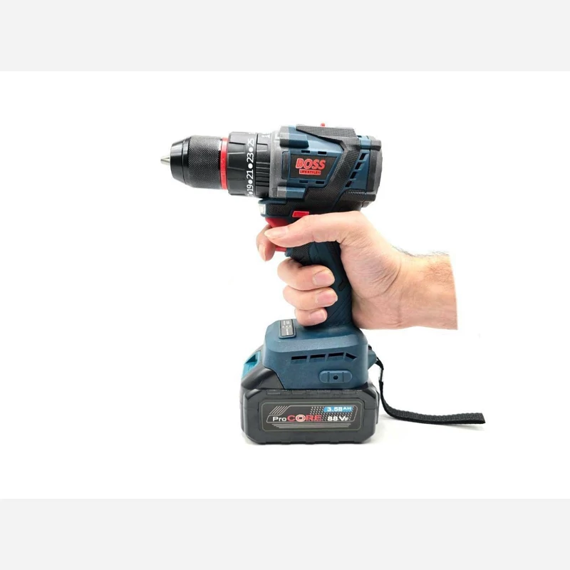 ⭐ دریل شارژی 88 ولت براشلس چکشی باس ✔️ باتری قاب بزرگ ✔ کیفیت فوق العاده بالا ✔ موتور براشلس ✔ سه نظام فلزی ✔ نشانگر روی باتری ✔ دو عدد باتری 88 ولت لیتیوم ✔ گیربکس دو دور قدرتمند ✔ دور 0 تا 450 و 0 تا 1600 دور بر دقیقه ✔ قابلیت کنترل سرعت فشاری ✔ چپگرد و راستگرد ✔ به همراه لوازم همراه؛ مته آهن( سایز 3، 4 و 5 میلیمتر)، مته چوب( سایز 3، 4 و 5 میلیمتر)، رابط فنری تاشونده، سه عدد نوک پیچ گوشتی چهارسو و دو عدد دو سو ، دو عدد نوک پیچگوشتی t20 و t15، بکس(سایز 4.5، 5، 6، 7، 8، 9، 10، 11، 12 میلیمتر) و تبدیل بکس خور سر دریلی سایز 1/4 ✔ کیفBMC