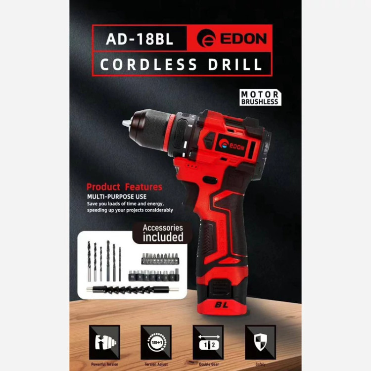 دریل شارژی 18 ولت براشلس دو باطری ادون مدل AD-18BL